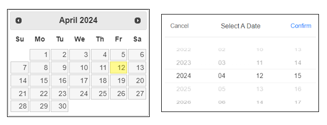 아래 사진처럼 모바일에서 PC에서 사용하는 날짜 선택기를 사용한다면 상당히 불편하다.