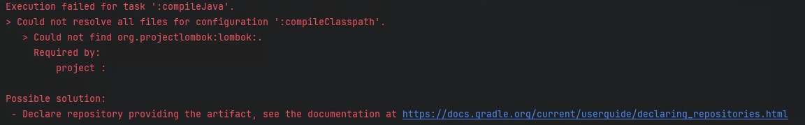 lombok의 버전을 명시하지 않고 gradle build하려 했기 때문에 발생하였다.